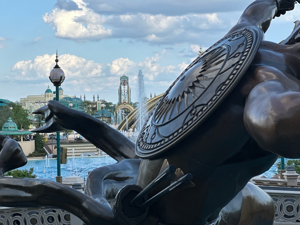 I don’t feel like it is really apples to apples to review our overall ride efficiencies and park operations as we were attending during technical rehersal. I will say that the team members were very prepared and ready to open the park; however, they were (and still are) working through the challenges of new ride operations and capacity. I see this as an on-going issue for the months to come. We did spend most of the day in the park (aside from a short break for showers and coffee at the hotel in the afternoon before returning until park close. We rode everything that was opened during our park day but did not take in any of the shows. We prioritized taking in the scenery, shops, food, ambience and attractions as much as possible for one very hot day.